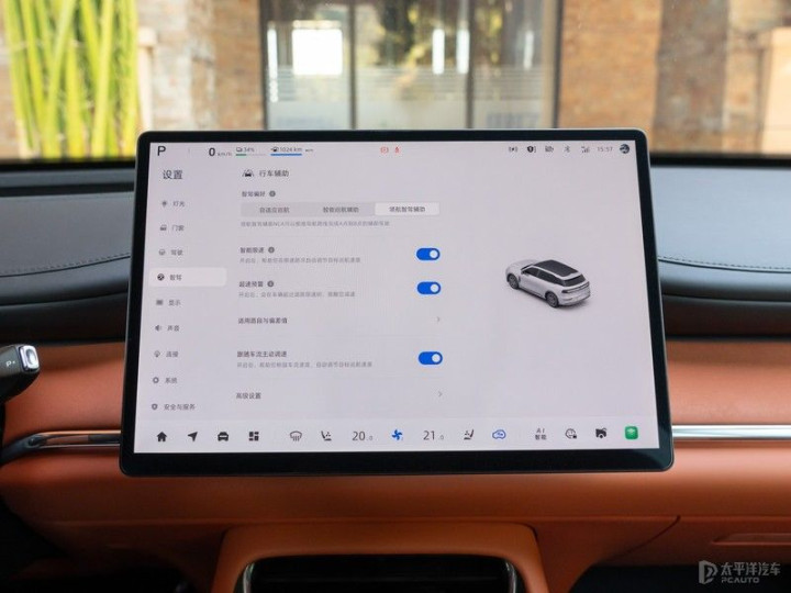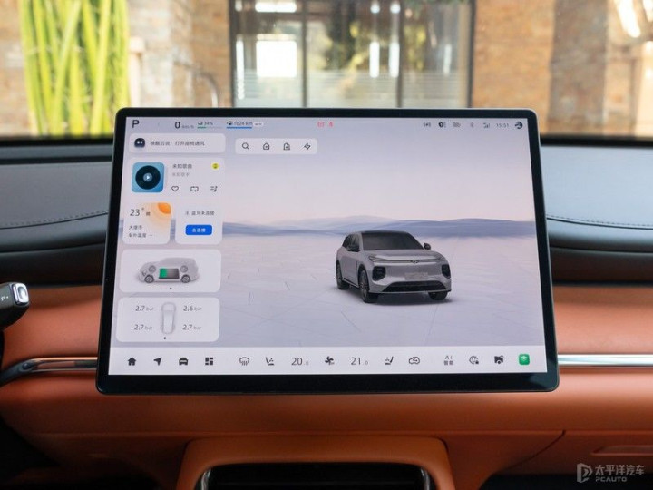 中控台上配备了15.4寸的向日葵旋转屏设计,支持15°自适应旋转,其界面设计简洁直观,操作流畅。通过这块向日葵屏,用户可以轻松控制车辆的多媒体系统、导航系统、空调系统等各种功能。此外,中控屏还支持智能语音控制功能,用户只需说出相应的指令,即可完成各种操作,极大地提高了操作的便利性。虽然没有传统的液晶仪表盘,但是车内所有的行驶和驾驶状态信息都集中在HUD身上。